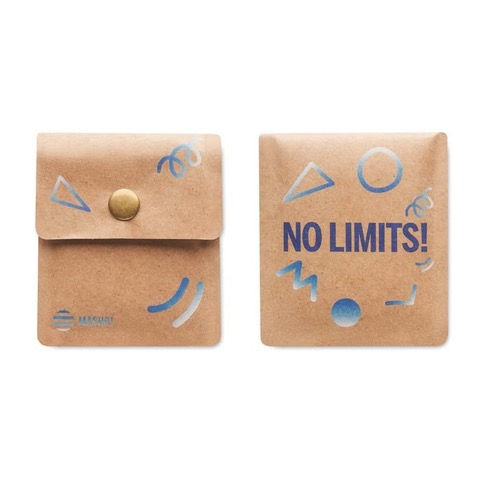 Tu cenicero de bolsillo de papel kraft con diseño a todo color, interior de aluminio de 0,1 mm y botón de cobre.